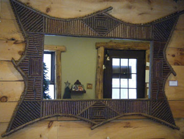 #866 - Mirror with intricate willow twig work and beveled mirror.